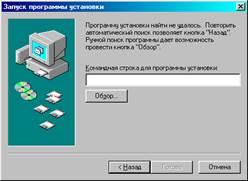 Далее поступайте в соответствии с инструкциями, которые будут появляться в последующих окнах. Windows 98 попросит вас вставить диск, на котором находится ваша программа. Однако, если Windows 98 не сможет найти вашу программу установки и перед вами появится окно, изображенное на рис. 2.