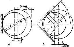 К способам ориентации следует, прежде всего, предъявить требование, чтобы колебание размеров детали в пределах допуска мало отражалось на ее положении. Подходя к оценке способов ориентации валика в призмах с этой точки зрения, ' можно сделать вывод, что первый случай (неподвижный плоский упор) лучше, так как центр валика переместится при изменении размера цилиндра на половину, величины этого изменения. При втором случае ориентации перемещение центра валика будет равно половине изменения размера цилиндра, деленной на синус половины угла между щеками призм.