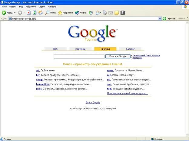 Рис. 5. Поиск в группах новостей