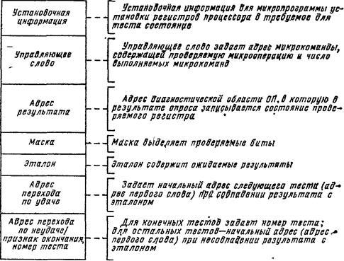 Обычно управление потактовой работой устройства и опрос состояния устройства выполняются с помощью команды ДИАГНОСТИКА, а сравнение с эталоном, маскирование и сообщение о неисправности—с помощью команд на программном уровне.
