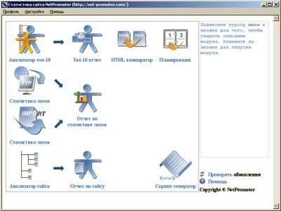 Как же должна выглядеть истинно профессиональная Интернет-статистика? С точки зрения компании NetPromoter, специализирующейся на разработке собственного программного обеспечения в сфере статистики и продвижения веб-проектов, Статистика должна базироваться на максимально достоверных данных и быть на выходе не просто цифрами и графиками, а реальной программой для дальнейшей многоплановой работы с собственным сайтом. Именно такой подход был реализован в новом пакете программного обеспечения от NetPromoter, получившем название "Статистика сайта".