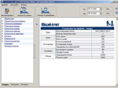 Компания NetPromoter предложила следующее решение привычной для большинства ситуации: у вас на сайте устанавливается свой собственный счетчик, который пишет свой собственный статистический файл, помимо логов, создаваемых сервером автоматически. В этом файле и фиксируется вся информация, поступающая со счетчика. В программу встроен анализатор такого формата файлов, который также анализирует и обычные лог файлы. Таким образом, вы, с максимально возможной точностью, получаете всю информацию о посетителях.