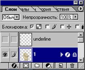 довольно подробно показаны эффекты слоя. Если слой снабжен эффектами, рядом с его именем есть значок «f» со стрелкой. Стрелка может быть направлена вниз, и тогда в палитре ниже строки слоя показаны строки эффектов – сначала общая, затем по очереди каждый эффект отдельно. Если стрелка направлена вправо, то комплект эффектов не показан в палитре, закрыт. Чтобы посмотреть эффекты слоя, щелкните на стрелке. Повторный щелчок снова закроет комплект.