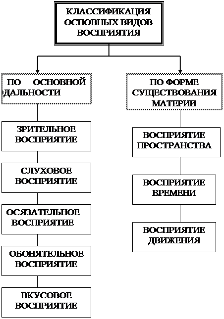 Классификацию основных видов восприятия можно выразить следующей схемой: