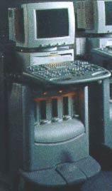 Дуплексное сканирование с цветовым доплеровским кодированием и спектральным допплеровским анализом проводили на многофункциональном ультразвуковом сканере Acuson–Sequoia–512 линейным датчиком 15L8 с частотой сканирования 14–8 МГц, работающим в режиме реального времени (рис. 1). Сканирование проводили транспальпебрально в положении больного лежа с использованием обычного геля для УЗ–исследований.