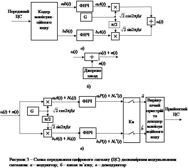 Вихідним до курсової роботи є неперервний первинний сигнал електрозв’язку. Подальші перетворення відповідають передаванню його цифровим методом модульованим сигналом по радіоканалу. У каналі зв’язку діє адитивний білий гауссовий шум.