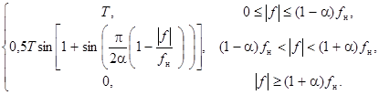 3. Амплітудний спектр елементу модульованого сигналу, що передається каналом зв’язку, – "корінь із спектру Найквіста" з коефіцієнтом закруглення a.