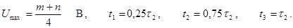 можно определить реакцию цепи на заданное воздействие и в том случае, когда внешнее воздействие на цепь описывается кусочно-непрерывной функцией, которая имеет конечное число конечных разрывов. В этом случае интервал интегрирования необходимо разбить на несколько промежутков в соответствии с интервалами непрерывности функции и учесть реакцию цепи на конечные скачки функции в точках разрыва. Для определения реакции цепи на воздействие импульса изображённого на рис.2 очевидно, что интервал интегрирования необходимо разбить на четыре части ( tÎ(0,t1