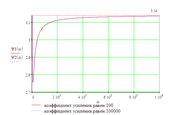 Графики для фазочастотных характеристик для двух значений коэффициента усиления:Рис.5.