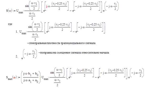 Найдем спектральную плотность выходного сигнала S(jω), используя спектральный метод анализа.