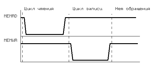 Режимы работы блока памяти определяются внешними управляющими сигналами MEMWR, MEMRD.
