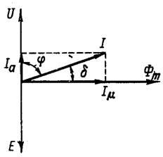 m, который отстает по фазе от напряжения на 90°. От потока на 90° отстает ЭДС,