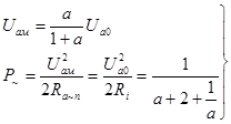 и приняв производную нулю, нетрудно убедится, что максимум отдаваемой мощности имеет место при а=1