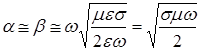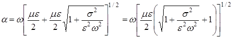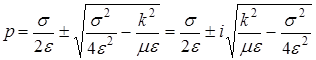 Таким образом, при волновое число k комплексно. Обозначим k=a+ib, где a — фазовая константа, b — коэффициент затухания. Тогда