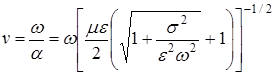 Исследуем фазовую скорость волны в среде с конечными e и s. Поскольку волновое число комплексно: k=a+ib, имеем
