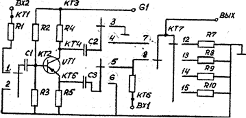 - изменять сопротивления резисторов и емкости конденсаторов в выходной цепи транзистора с помощью переключателей, расположенных на передней панели макета;