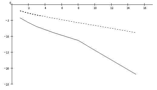 Для устойчивого приема сигнала необходимо, чтобы интерференционные искажения сигнала в линии не превышали допустимого значения на данной скорости передачи. С помощью программы «Skrivlen» определим величину интерференционных искажений. Для этого приведем на рисунке 10 интерференционную диаграмму сигнала (расчет ведем для длины линии 5 км, диаметра кабеля 0,4 мм, отношение сигнал/шум - 10 Дб и скорости передачи сигнала 17188 Бод - такая эффективная полоса СПМ сигнала):