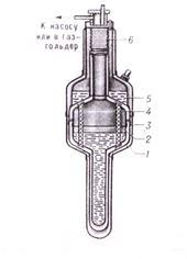 (Рис. 3) Металлические гелиевые криостатыКриостат ( от крио… и греч. Statos – стоящий, неподвижный), термостат, рабочий объем которого поддерживается при криогенных температурах за счет постороннего источника холода. Обычно в качестве источника холода (хладагента) применяют сжиженные или отвержденные газы с низкими температурами конденсации ( азот, водород, гелий и др.). По уровню поддерживаемой температуры и роду используемого хладагента различают криостат гелиевого, водородного и азотного уровней охлаждения. Температуру помещенного в криостат объекта регулируют изменением давления паров хладагента либо с помощью системы терморегулирования, установленной между источником холода и объектом.