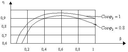 Анализ полученного выражения показывает, что КПД неоднозначно зависит от коэффициента нагрузки b и является функцией характера нагрузки что иллюстрируется кривыми, приведенными на рис. 6