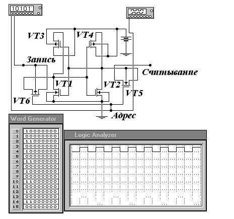 Рис. 8.1. Топология запоминающей ячейки ОЗУ.