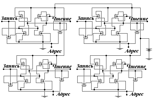 ТОПОЛОГИЯ ФРАГМЕНТА ОЗУ ИЗ ЧЕТЫРЕХ ЯЧЕЕК