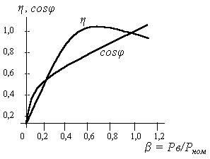 Поскольку главный магнитный поток намного больше потоков рассеяния и почти не зависит от нагрузки, реактивная мощность, потребляемая двигателем из сети, мало зависит от нагрузки и, как следует из выражения (9), cosφ