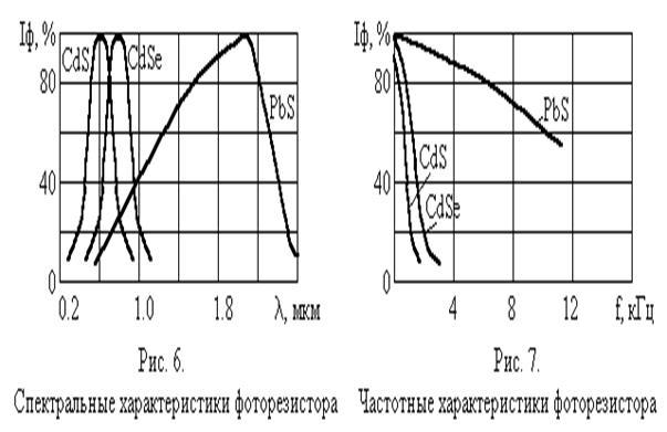 – это зависимость фототока от длины волны падающего света на фотодиод. Она определяется со стороны больших длин волн шириной запрещенной зоны, при малых длинах волн большим показателем поглощения и увеличения влияния поверхностной рекомбинации носителей заряда с уменьшением длины волны квантов света. То есть коротковолновая граница чувствительности зависит от толщины базы и от скорости поверхностной рекомбинации. Положение максимума в спектральной характеристике фотодиода сильно зависит от степени роста коэффициента поглощения.