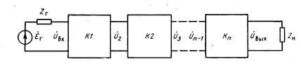 =Zвх/(Zг + Zвх) – коэффициент передачи входной цепи. Если коэффициент усиления отдельных каскадов выразить в логарифмических единицах, то общий коэффициент усиления многокаскадного усилителя будет равен сумме коэффициентов