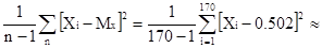 а) для выборки объемом 170 (рис. 1.1): Xmin = 0.0078, Xmax = 0.996.