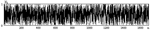 Получить выборку БСВ объемом n = 1700, По этой выборке проверить свойства независимости полученной случайной последовательности (вычислить 10 значений коэффициента корреляции).