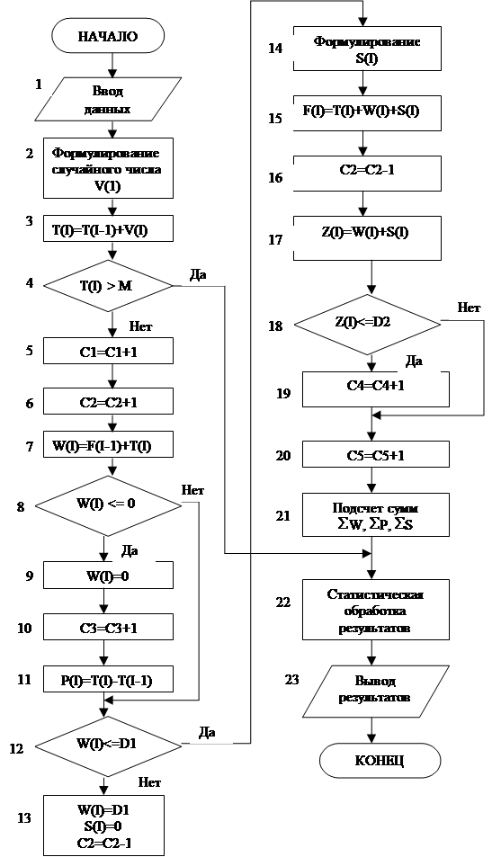 1. Разработать программу на алгоритмическом языке, реализующую алгоритм элементарной модели системы электросвязи, представленный на рис.1. Исходные данные взять из таблицы 1.