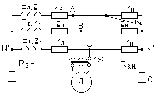 (напряжение прикосновения) при симметричной нагрузке (в схеме отсутствует короткое замыкание).