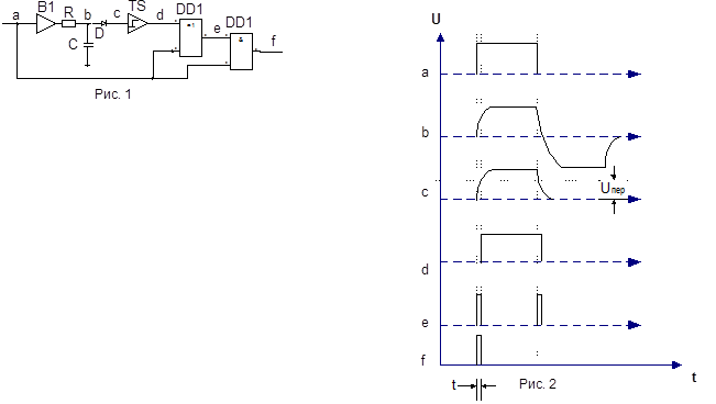 Пpедложите формирователь коротких импульсов по переднему фронту положительного прямоугольного импульсного сигнала на основе интегрирующих RC