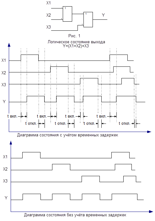 (исключающее ИЛИ), на выходе которого появляется высокий уровень, т.к. на входе 1 в течение времени t