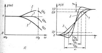 На рис. 1.1 приведены типичные случаи искажений АЧХ в области высоких частот полосы пропускания тракта и качественно соответствующие им формы ПХ в области малых времен, соизмеримых со временем передачи одного элемента изображения. Пусть форма кривых 1 этих характеристик соответствует номинальным, нормированным в соответствии с принятыми параметрами ТВ системы и допустимыми искажениями изображения: спадом АЧХ на верхней граничной частоте fв(или сов
