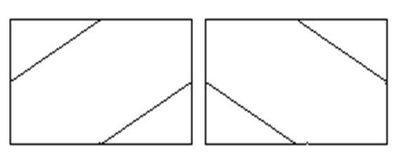Оценка четкости по вертикали с помощью горизонтальных штриховых мир затруднена муаром, возникающим из-за биений достаточно близких пространственных частот, которые образуются дискретными структурами ТВ растра и штрихов миры. Поэтому с помощью ТИТ оценивается только качество чересстрочной развертки по искажениям наклонных линий (см. рис. 2.6)При слипании (сближении) строк четного и нечетного полей растра эти