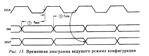 Временная диаграмма для этих событий может быть изменена. Кроме того, события GTS, GSR и GWE могут активизироваться после перехода всех выходов DONE в высокое состояние при конфигурировании множественных устройств FPGA, что позволяет начинать их работу в штатном режиме синхронно. Во время выполнения последовательности допускается включение на любой фазе паузы до момента нормального захвата следящей системы схемы автоподстройки задержки (DLL).