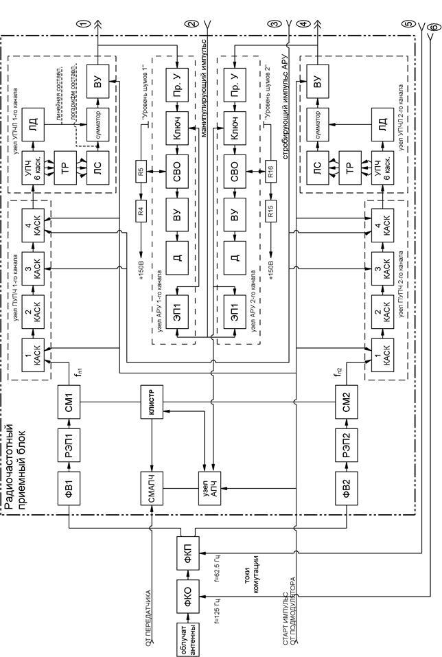 · для последующего приема отраженных от цели сигналов, их преобразования в сигналы промежуточной частоты (Fпч=30 МГц), усиления (по 2-м идентичным каналам), детектирования и выдачи на другие системы РЛГС.