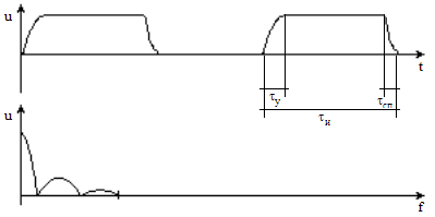 Рис. 2.2.3 Временная и спектральная диаграммы видеоимпульсов на выходе детектора РПрУ
