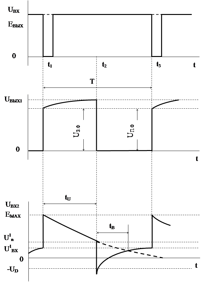 к нулю . Формирование рабочего импульса длительностю tU заканчивается при UВХ2(tU) = U1n , так как