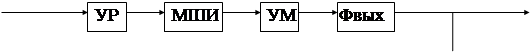Усилитель рассогласования УР усиливает результат сравнения опорного напряжения UОП с напряжением, поступающим с выхода чувствительного элемента ЧЭ, находящегося в цепи обратной связи.Далее сигнал преобразуется в последовательность импульсов модулятором ширины импульсов МШИ, которые поступают в усилитель мощности УМ. Сигнал с выхода усилителя мощности фильтруется выходным фильтром Фвых.
