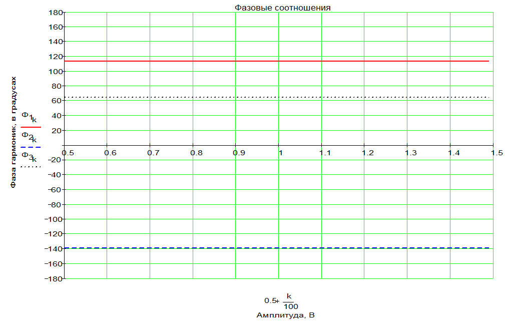 Каждая подгруппа имеет по три графика, на каждом из которых изображены три кривые, соответствующие одному параметру для трёх кратных частот: частота зондирующего сигнала, удвоенная частота и утроенная частота. Эти параметры имеют соответствующие индексы, отвечающие номеру гармоники в порядке возрастания. Первый график во всех подгруппах отвечает за полные коэффициенты модуляции, второй график отвечает за относительные нелинейные коэффициенты модуляции, а третий за фазовый угол модуляции.