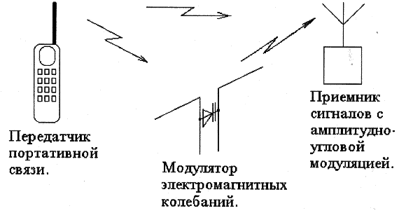 Отражатель – модулятор, в том или ином исполнении, используется достаточно давно для перехвата речевой информации. Принцип работы основан на зависимости параметров нелинейного элемента от состояния воздушной среды, которое в свою очередь определяется наличием в окружающем пространстве звуковых волн. С помощью звуковых волн люди общаются между собой, поэтому именно в канале связи «человек – воздушное пространство - человек» происходит перехват информации с помощью отражателя - модулятора.