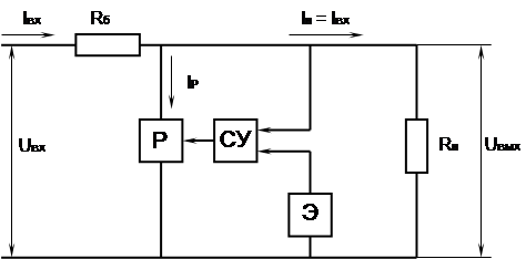 Различие приведенных схем состоит в следующем. В последовательных стабилизаторах напряжение на регулирующем элементе возрастает при увеличении напряжения на нагрузке, а ток приблизительно равен току нагрузки. В параллельных стабилизаторах напряжение на регулирующем элементе не зависит от входного напряжения, а ток находится в прямой зависимости от напряжения на нагрузке.