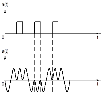 Как уже было сказано выше, на сигнал воздействует низкочастотный шум, поэтому стараются уйти в область высоких частот. Для этого используют в качестве несущей - высокочастотный сигнал. Процесс наложения низкочастотного сигнала на высокочастотный называется модуляцией.