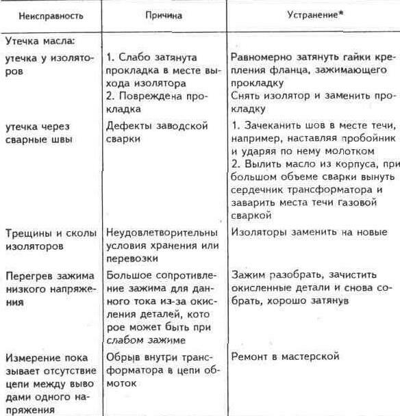 Таблица 2. 21 НЕИСПРАВНОСТИ ТРАНСФОРМАТОРОВ
