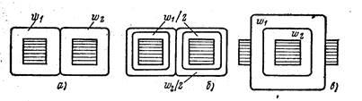 Достоинство такого расположения обмоток—небольшое значение магнитного потока рассеяния из-за меньшей толщины намотки и небольшой расход обмоточных проводов, так как снижение толщины намотки ведет к уменьшению средней длины витка обмотки.