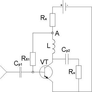 Для того чтобы больше мощности шло в нагрузку, в цепь коллектора включаем дроссель.[2]