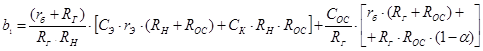 находим исходя из заплонированного на выходной каскад коэффициента усиления, в разах, сопротивления генератора или другими словами выходного сопротивления предыдущего каскада и рассчитываем по следующей формуле [2]: