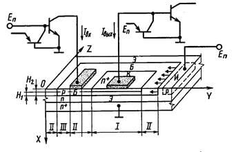 а) выпрямляющие р-n-переходы (или переходы типа Шотки), имеющие активные (инжектирующие, коллектирующие или совмещающие эти функции) и пассивные участки;